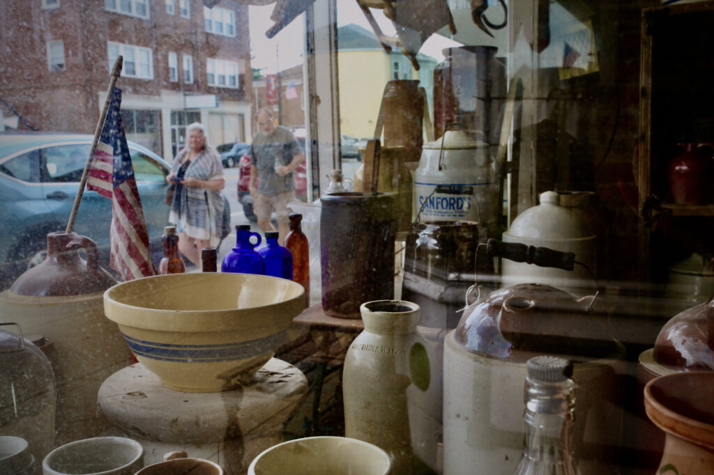 Display windows are, by their very nature, liminal spaces. Thresholds. Attempting to attract the attention of passers-by, they rely upon (or induce) the casual, relaxed pace of pedestrians. Neglected or abandoned windows suggest a nostalgic, melancholy mood tied to the economic decline suffered by many rural downtowns. But storefronts can also tantalize and seduce, luring us with a visual tease of hidden interiors and unseen possibilities. Similarly delving beneath surface details, several images capture multilayered reflections, often revealing ironic or humorous juxtapositions.